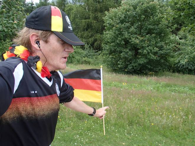 Runde 9 12.21 Uhr / Km 35,7 Und das nur wenige Stunden, nach dem bei der Fußball-EM Deutschland erstmals in 84 Jahren Italien in einem EM- oder WM-Spiel hatte schlagen können. |