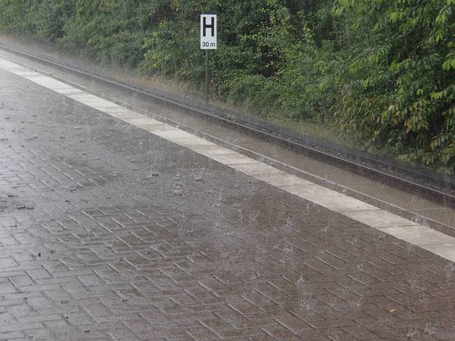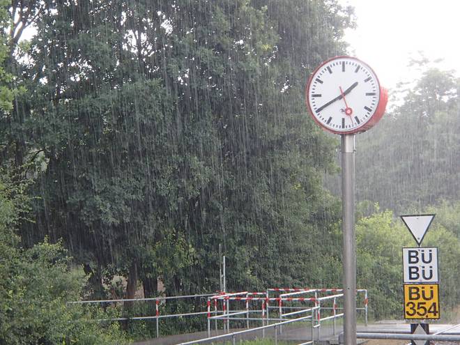 AKN Station Holstentherme 13.40 Uhr Ich stand noch nicht lange an der Haltestelle, als der große Regen kam. Zunächst sah es so aus, als würde das Unwetter vorbeiziehen, aber dann brach es doch noch los. |