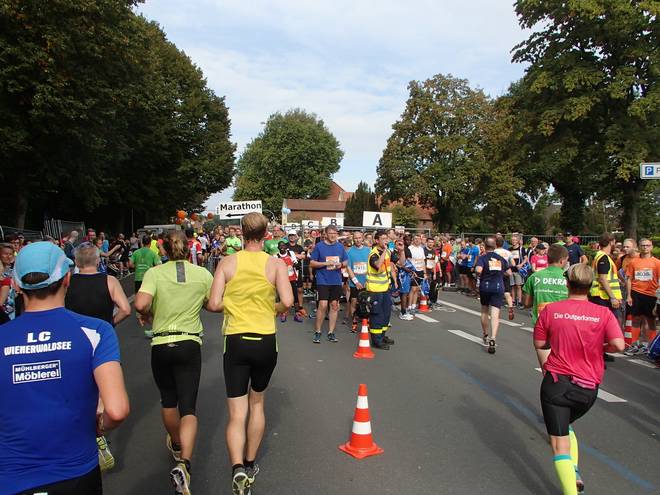 Twerenfeldweg 11.33 Uhr - Km 26,8 ... aber die hinter mir waren auch nicht weit. Dazwischen konnte man aber gut und frei laufen. |