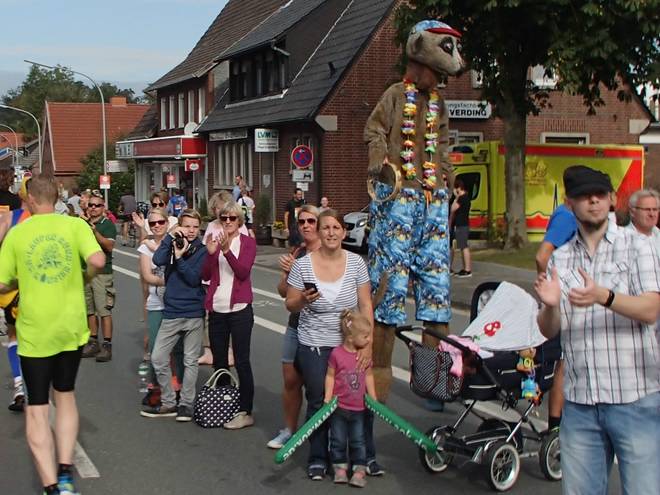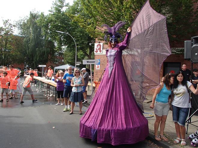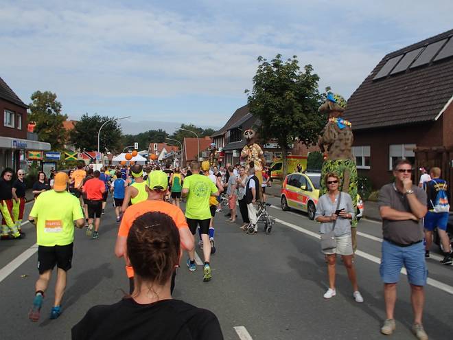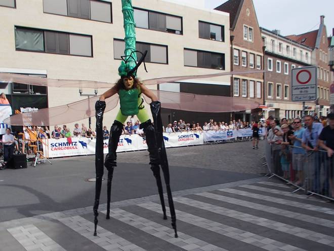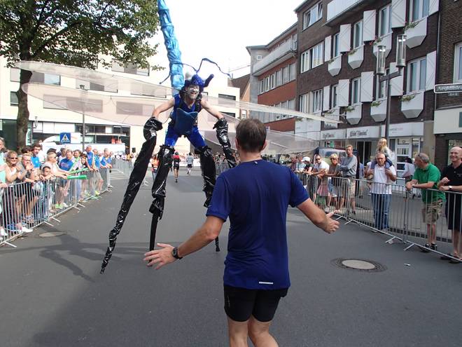 Aegidiimarkt 12.56 Uhr - Km 41,8 Wer wollte, der konnte den Insekten auf Stelzen durch die Beine laufen. Ich war da etwas skeptisch, weil ich nicht mehr so richtig gerade aus lief... |
