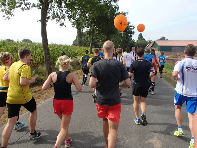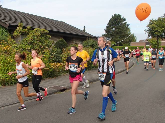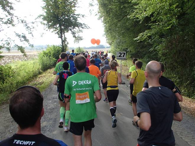 Haus Vögeding 11.23 Uhr - Km 25,0 Bisweilen war es nämlich sehr eng, was so mitten in der Gruppe hinter den Ballons besondern kuschelig wurde. Und wenn dann noch einer der schnellen Staffelläufer da durch wollte... |