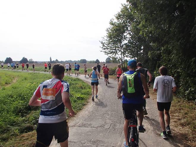 Schonebecker Weg 11.14 Uhr - Km 23,3 Und dann hängte ich mich an die vordere Ballongruppe. Auf dem schmalen Weg war eh kein Vorbeikommen. |