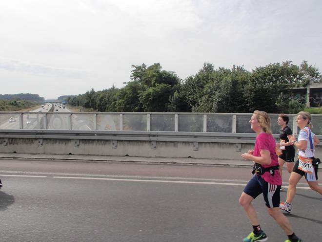 Roxeler Straße 11.55 Uhr - Km 31,0 Aus Roxel raus und über die Autobahn A1 rüber lieferte ich mir ein nettes Laufduell mit ein paar Staffelläuferinnen, die gerade zu ihrem Schlußspurt ansetzten. |