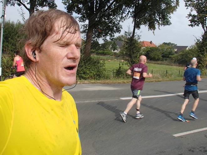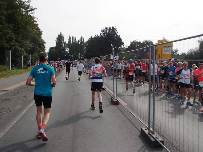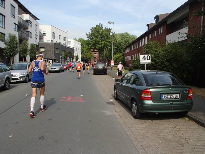 Roxeler Straße 12.02 Uhr - Km 32,2 Okay... die 20 Meilen bis hier war also nur gelaufen und jetzt fing das Rennen an. |
