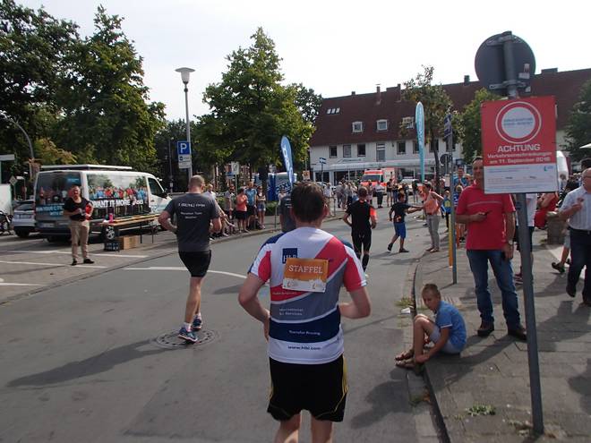 Altenberger Straße 11.03 Uhr - Km 21,3 Nach dem Halbmarathon der zweite Staffelwechsel. |