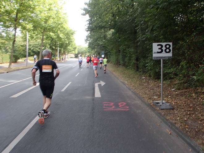 Roxeler Straße 12.35 Uhr - Km 38,0 Einfacher wurde der Marathon nicht, aber ich lag vom Tempo her immer noch locker unter vier Stunden. |