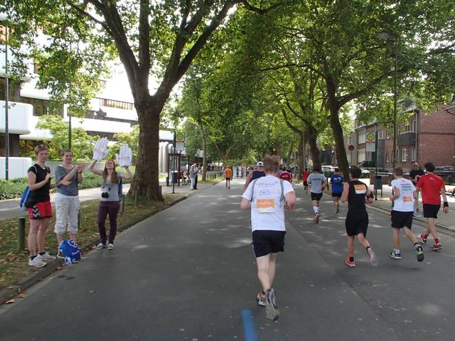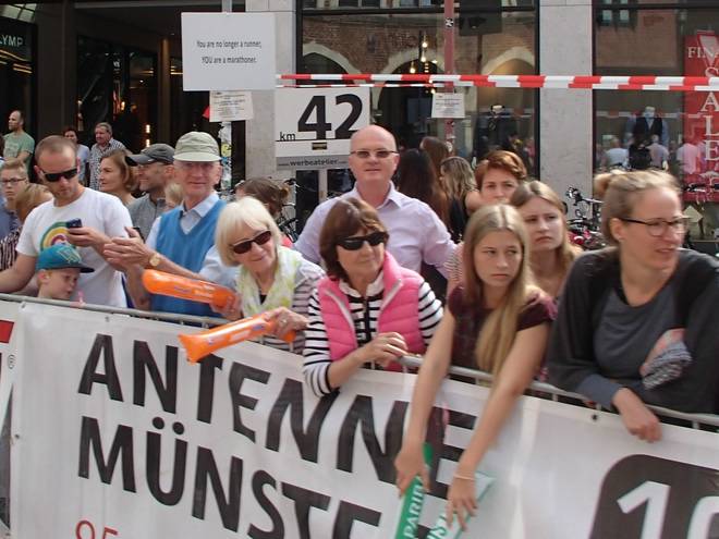 Aegidiistraße 12.54 Uhr - Km 41,5 Je weiter wir in den Stadtkern hinein liefen, desto besser wurde die Stimmung. |