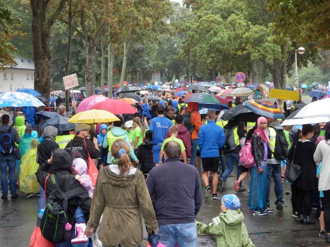 Damaschkestraße 15.39 Uhr Eigentlich wollte ich mir trotz des Regens auch den Start des Mini-Marathons anschauen, aber da war es so voll, daß da kein Durchkommen war. |