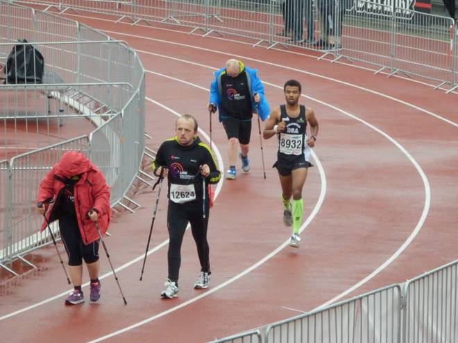 Auestadion 15.57 Uhr Während alles auf die ersten Kinder wartete, kamen immer noch Nordic Walker von der Acht-Kilometer-Runde ins Ziel. |