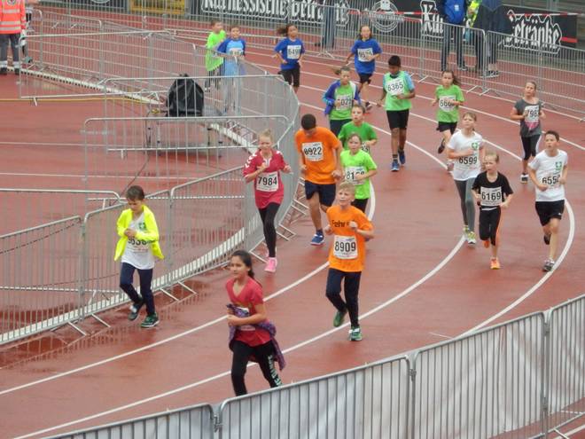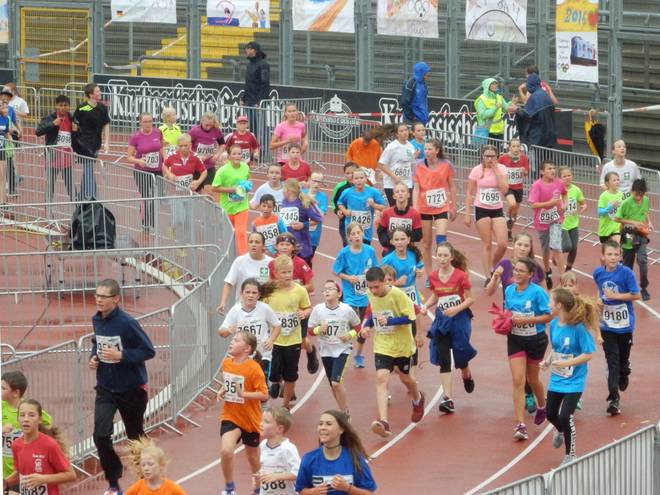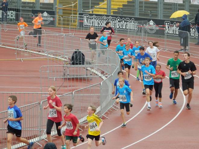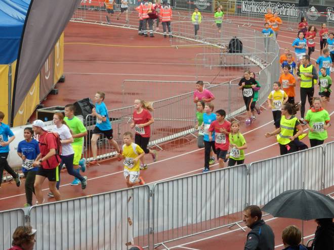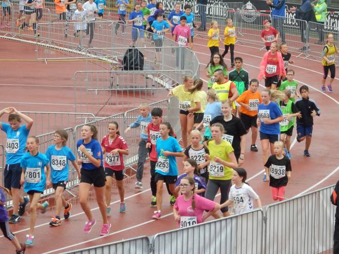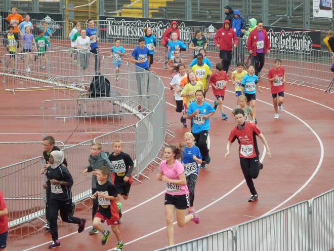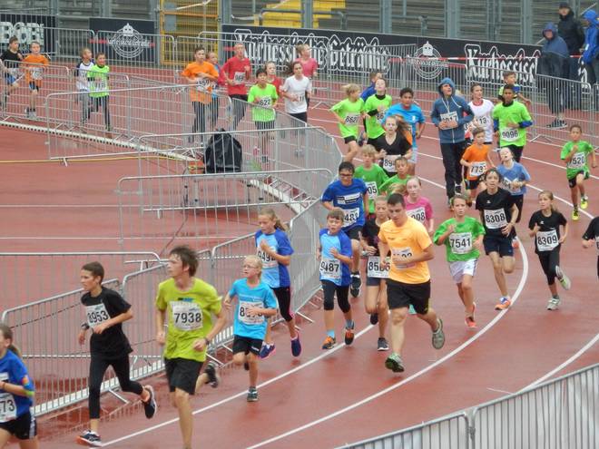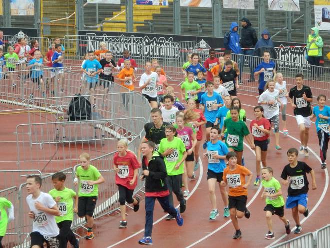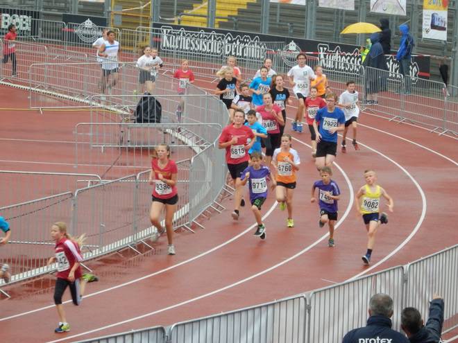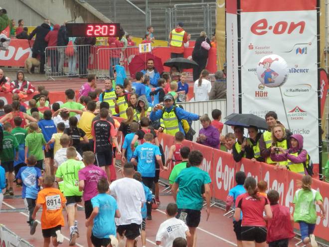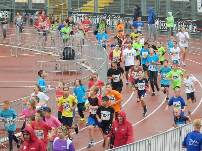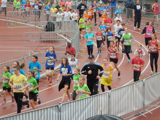 Auestadion 16.06 Uhr 2015 kamen bei 4208 Kinder ins Ziel. 5275 hatten sich für den Lauf gemeldet. Oder wurden gemeldet. Wenn es stimmt, daß seit 2007 die Meldezahl bisher noch jedes Jahr gestiegen ist, dann waren es 2016 mehr als 5275 Meldungen. Tja... da war dann wohl des Wetter Schuld an der dann recht bescheidenen Finisher-Quote. |