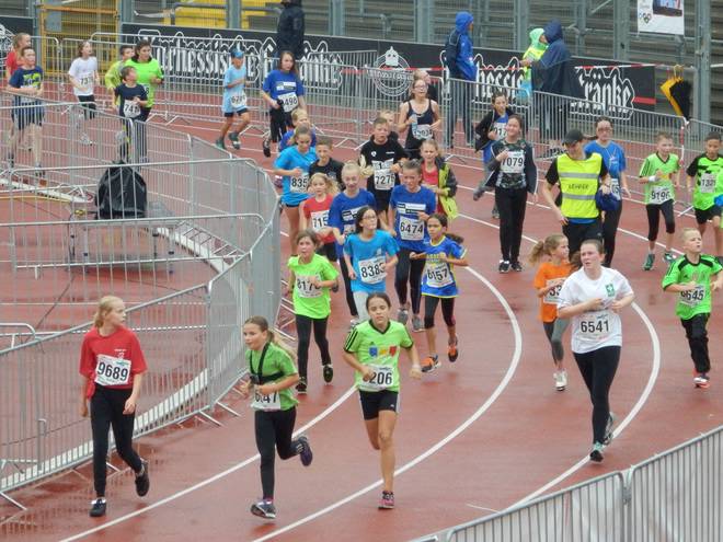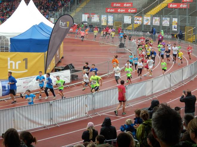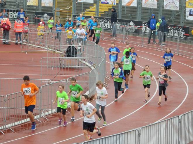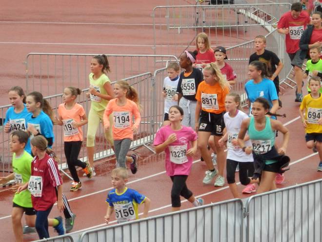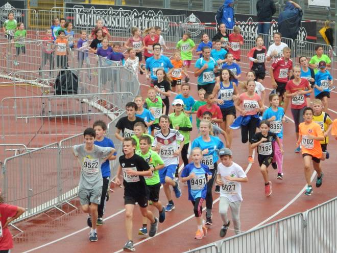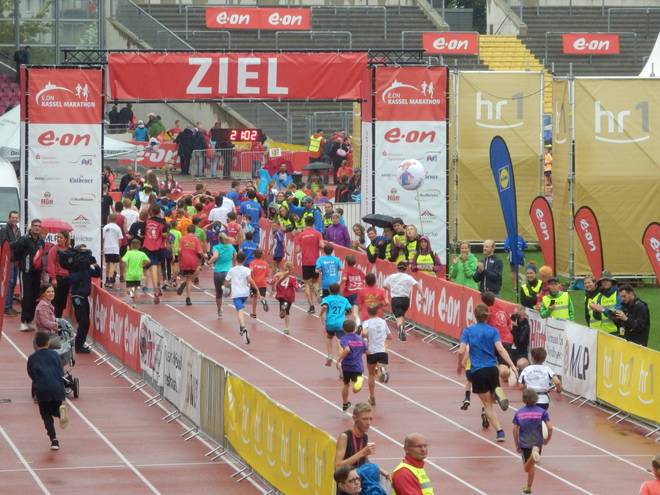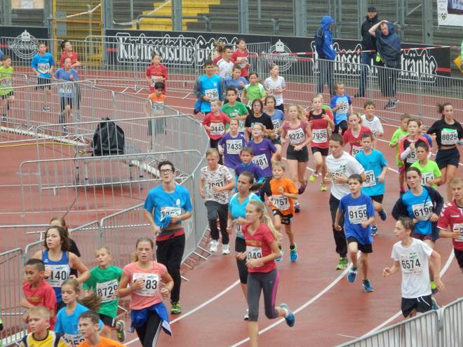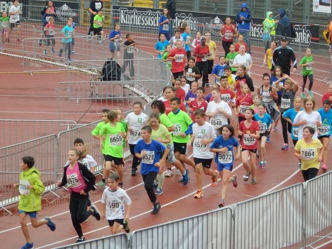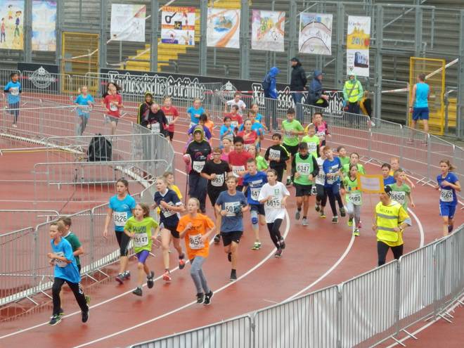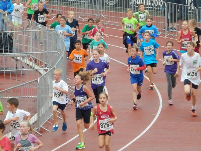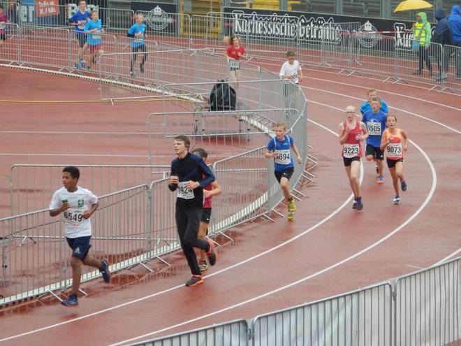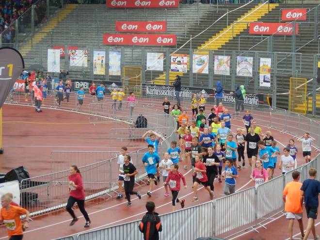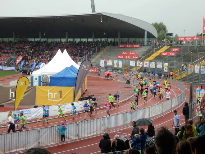 Auestadion 16.06 Uhr 2015 kamen bei 4208 Kinder ins Ziel. 5275 hatten sich für den Lauf gemeldet. Oder wurden gemeldet. Wenn es stimmt, daß seit 2007 die Meldezahl bisher noch jedes Jahr gestiegen ist, dann waren es 2016 mehr als 5275 Meldungen. Tja... da war dann wohl des Wetter Schuld an der dann recht bescheidenen Finisher-Quote. |