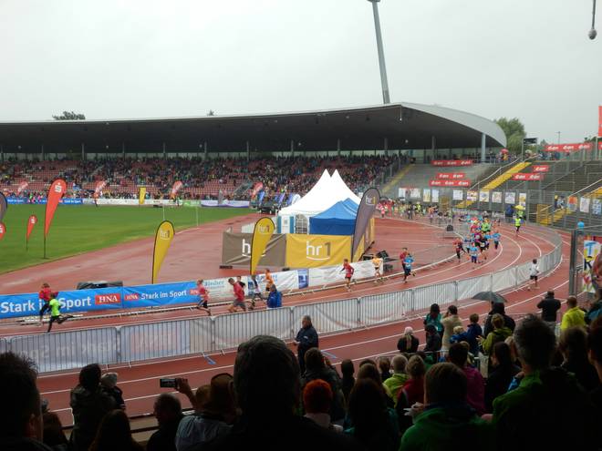 Auestadion 16.09 Uhr Wir sind hier gerade mal bei 21 Minuten Brutto. Und bei der Menge Läufer dürfte es am Start recht lange gedauert haben. Die Straße da ist nicht so sehr breit. |