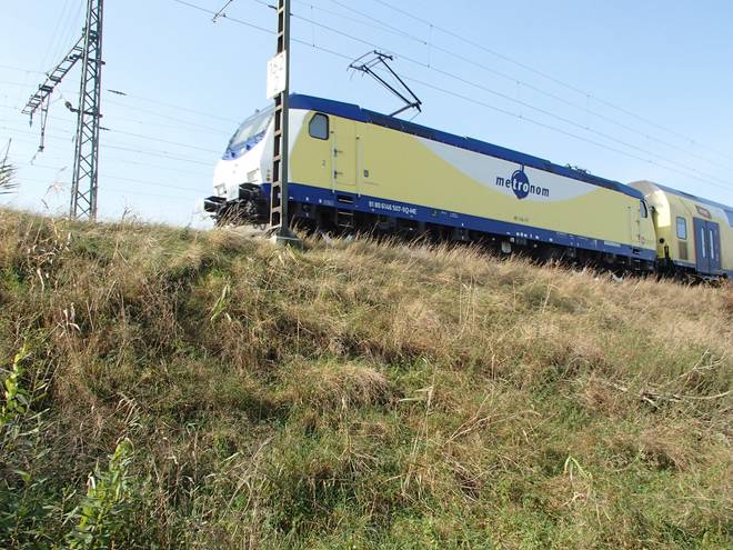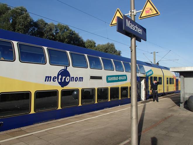Zur Viehtrift Runde 4 12.04 Uhr / Km 18,5 Das war der leicht verspätete 12-Uhr-Metronom Richtung Hamburg. Drei Stunden später wollte ich im Zug sitzen. |