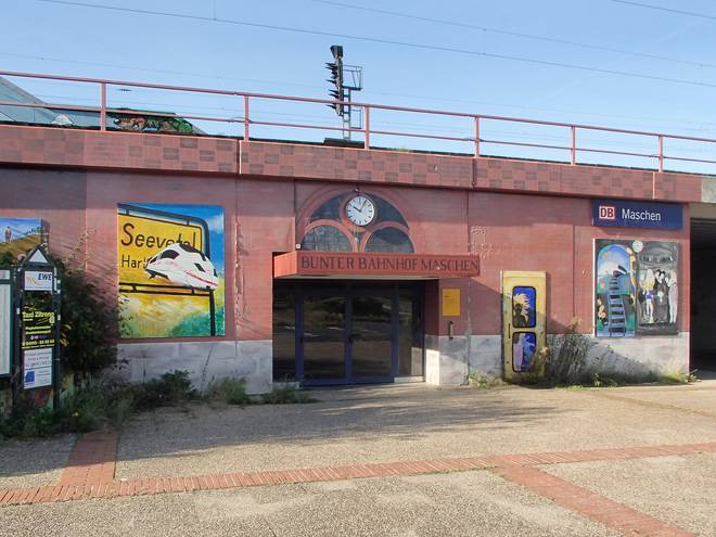 Bunter Bahnhof Maschen 9.18 Uhr Was wohl aus dem Bahnhof wird? Da die Decatur-Brücke abgerissen werden soll, gab es keine sinnvolle Verbindung mehr zwischen dem Bahnhof und dem Ort Maschen. |