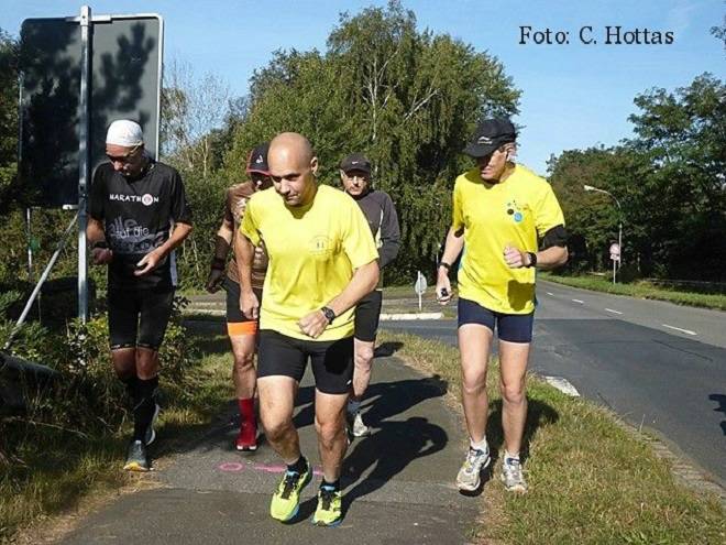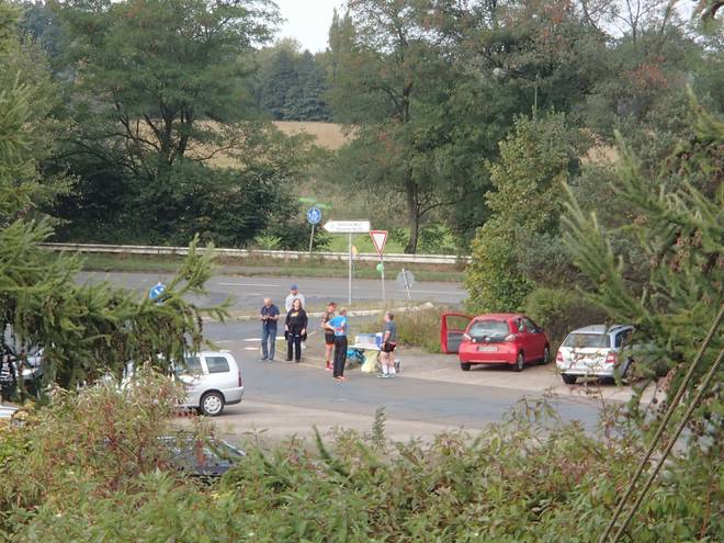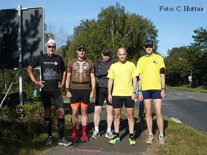 Hörstener Straße 10.21 Uhr Von neun Voranmeldern waren fünf am Start. Christine, Martin und Christian hatten sich von ihren Ultra-Marathons der Vorwoche noch nicht erholt und Wolfgang steckte immer noch im Stau. Foto: Christian |