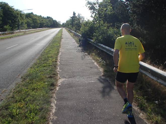 Zur Viehtrift Runde 5 12.31 Uhr / Km 23,5 Dieses letzte Rundenstück zwischen dem Seevetunnel und dem Bahnhof Maschen kam mir immer besonders kurz vor. Trotz der 1,2 Kilometer. |