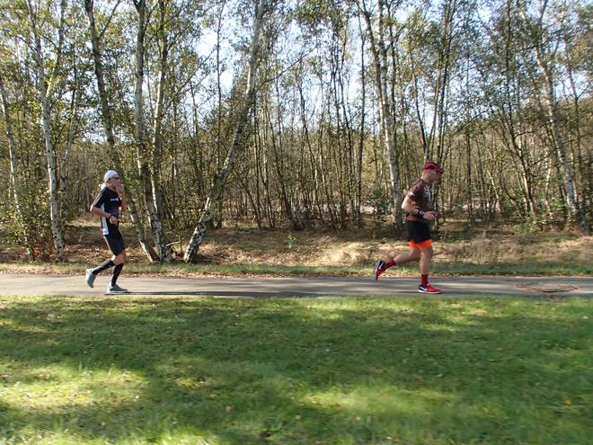 Hörstener Straße Runde 5 12.15 Uhr / Km 20,5 Mit Wolfgang hatte ich gar nicht mehr gerechnet. Er war doch noch angekommen und elf Minuten später gestartet. Den Rückstand hatte er schnell aufgeholt. Runde Vier in 26:30 Minuten. |