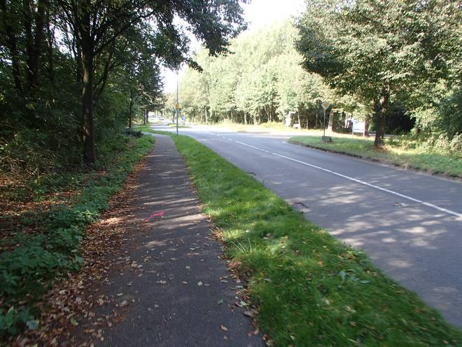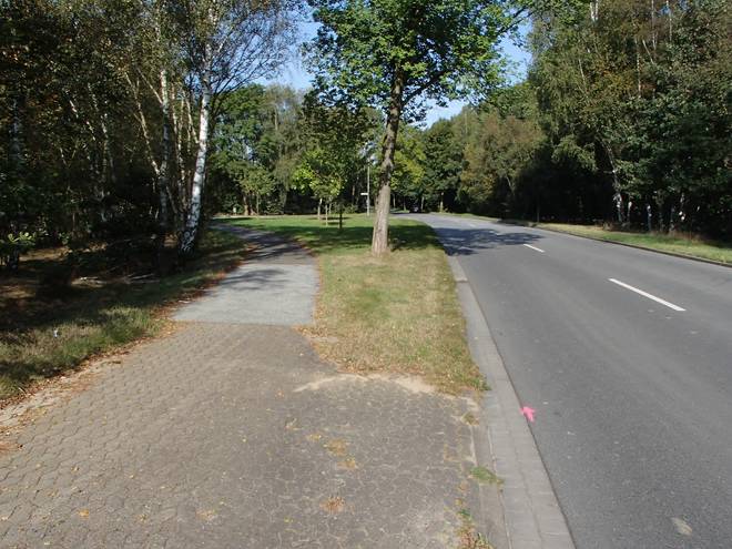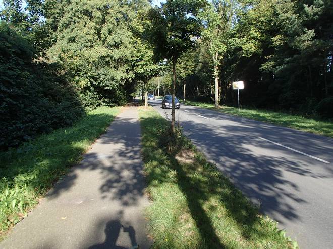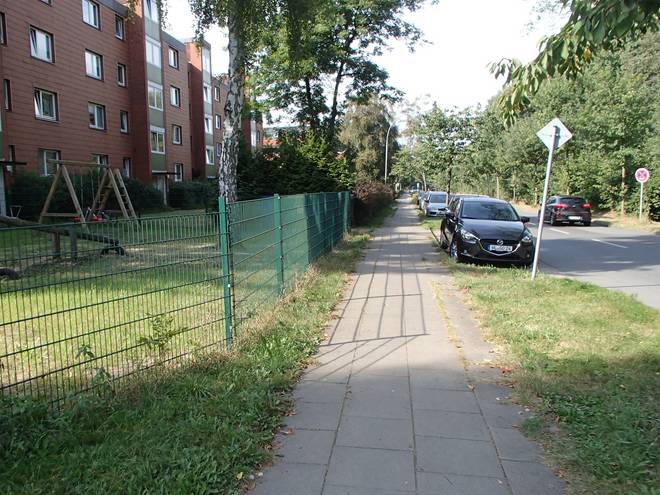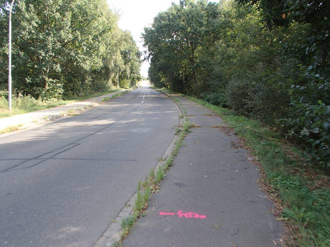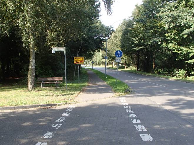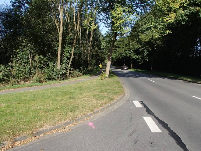 Maschener Schützenstraße Runde 1 10.31 Uhr / Km 1,8 So falsch war das offenbar nicht, denn ich hatte hier einen Richtungspfeil, während auf dem Fußweg keiner war. |