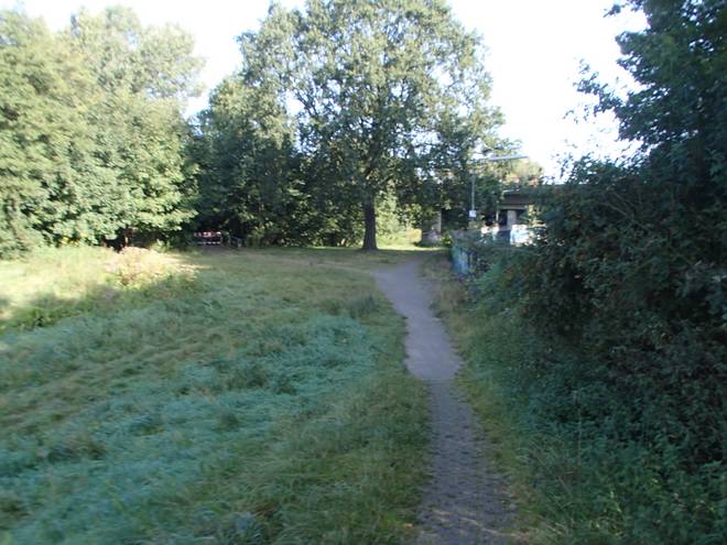 Alte Bahnhofstraße Seeve Runde 1 10.38 Uhr / Km 2,9 Nachdem wir ein wenig durch das östliche Maschen gelaufen waren, ging, es über einen kleinen Wall hinweg an den Seeve. Und damit in Richtung meines Albtraums. |
