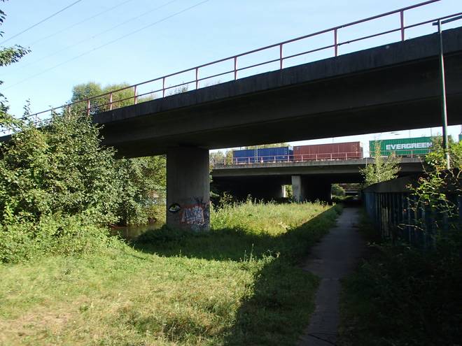 vom Bahnhof Maschen über die Decatur-Brücke, durch Maschen und erst dann durch