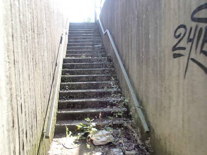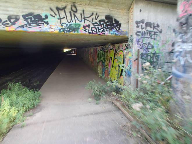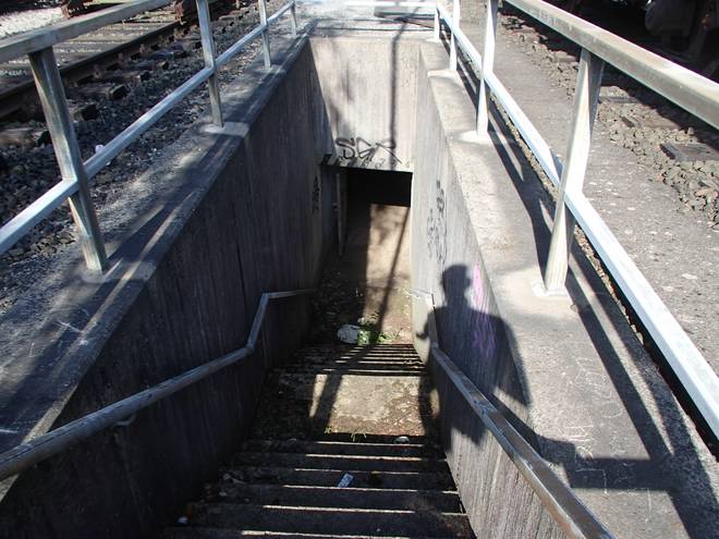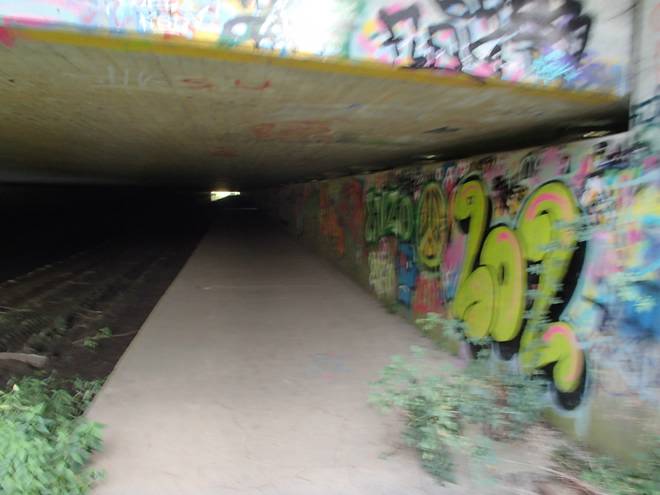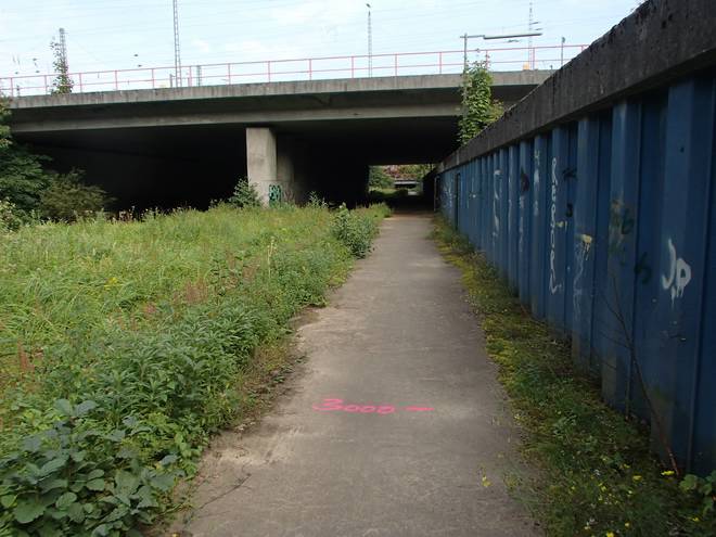 Rangierbahnhof Runde 3 11.32 Uhr / Km 12,9 Ob das erlaubt war? Keine Ahnung. Der Tunnel ist ein öffentlicher Weg und ein Verbotsschild gab es nicht. Zudem war der Aufgang auch schon im Juni offen. Wenn seitdem keiner sich darum gekümmert hat, den Aufgang zu sperren, kann es so verboten nicht sein. |