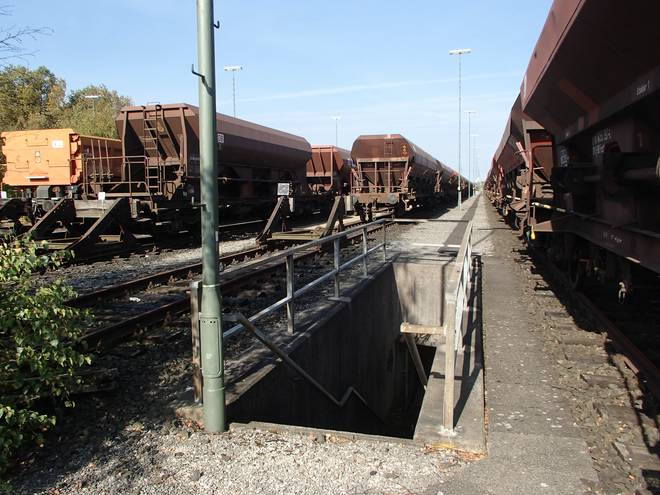 Rangierbahnhof Runde 3 11.32 Uhr / Km 12,9 Naja... so massiv viel gab es nicht zu sehen. Der Blick von oben ist schon eindrucksvoller. Aber immerhin kam man den Waggons ganz nahe. |