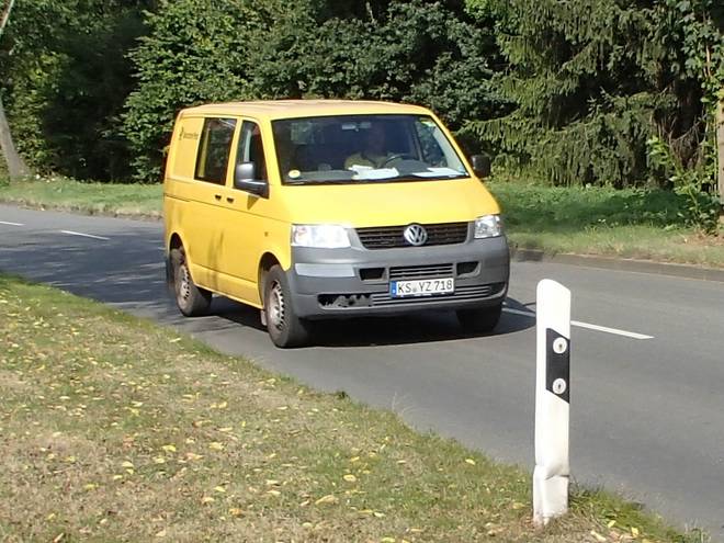 Maschener Schützenstraße Runde 5 12.19 Uhr / Km 21,2 Ein Postwagen aus Kassel. Zumindest mit Kasseler Nummernschild. Vielleicht haben ja alle Postauto KS auf dem Nummernschild... |