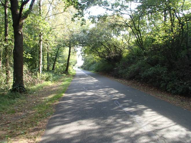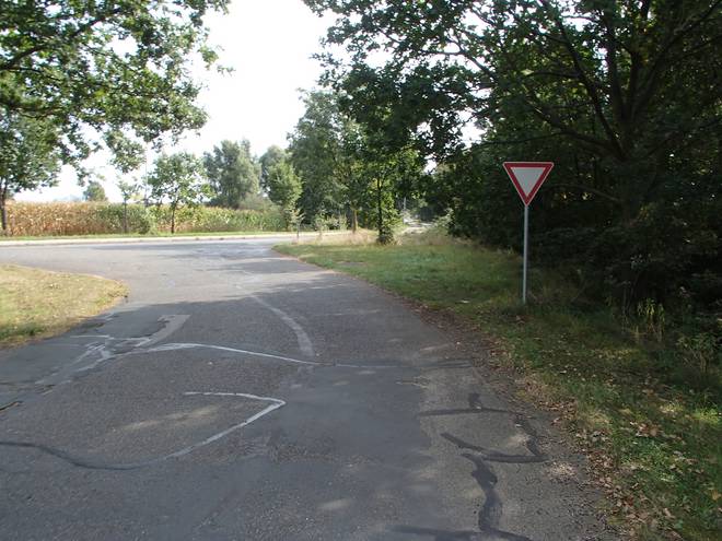 Alte Bahnhofstraße Runde 9 14.08 Uhr / Km 40,9 Links rein der Hochzeitswald. War aber sehr dunkel da drin. Keine Ahnung, ob das als böses Omen oder aber als Einladung gedacht war. |
