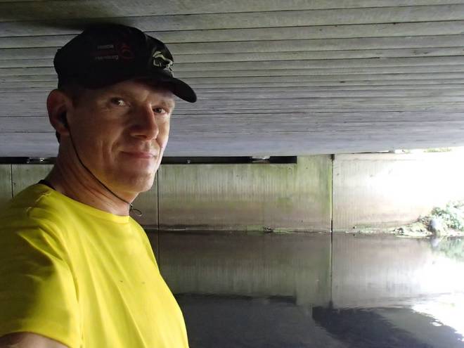 Seevetunnel Runde 2 11.07 Uhr / Km 8,4 Ab der zweiten Runde lief ich dann aas letzte Tunnel-Drittel jeweils auf dem unteren Level. Da war es zwar etwas matschig und uneben, aber dafür konnte ich aufrecht laufen. Im Juni gab es diese Option nicht. Da führte die Seeve Hochwasser und die untere Ebene stand unter Wasser. |