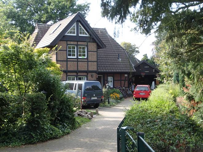 Maschener Schützenstraße Runde 8 13.40 Uhr / Km 35,7 Das Haus fiel mir in jeder Runde ins Auge. Es paßte so schön in die Landschaft. Das hätte ich auch gern. |