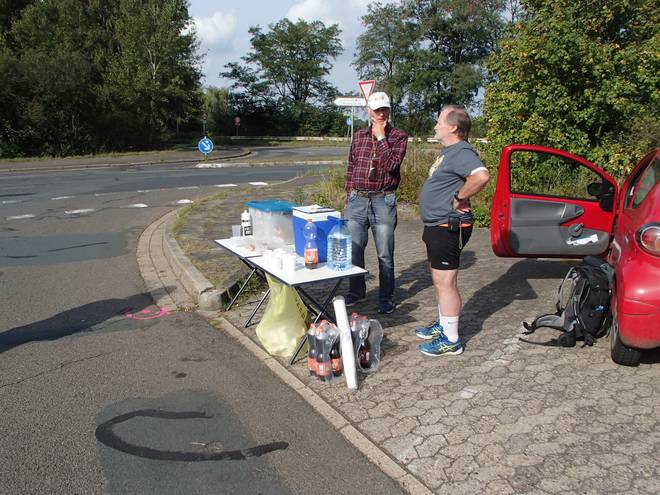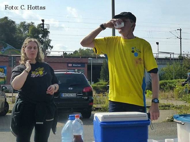 Bahnhof Maschen Runde 8 13.54 Uhr / Km 38,4 Eine Sicherheit hatte ich noch. Die letzte Runde war nicht ganz so lang, da das Ziel direkt hier am Verpflegungsstand war, ich also keine weitere Zeit durchs Trinken verlieren würde. Foto: Christian |