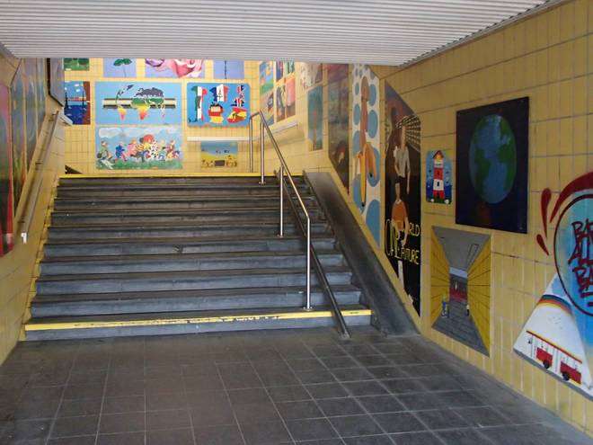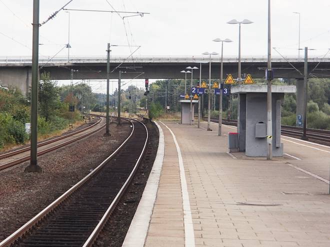 Bahnhof Maschen 14.48 Uhr Den Bahnhof hatte ich dann pünktlich erreicht. Und wenn ich die Treppen innerhalb von zwölf Minuten schaffen würde, dann würde ich auch meinen Zug erreichen. |