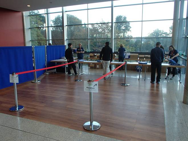 ÖVB-Arena 7.47 Uhr Offiziell sollte es am Sonntag keine Marathon-Messe geben, aber ein paar Stände waren doch noch da. Ob die Messe am Freitag und Samstag größer war? |