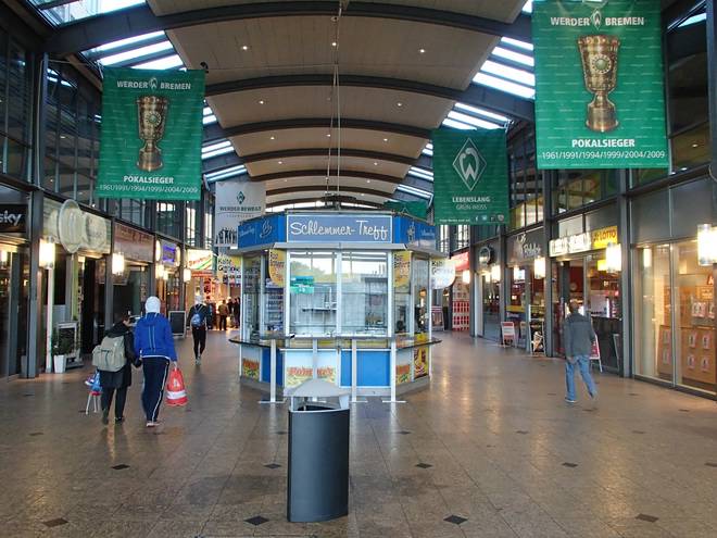 ÖVB-Arena 7.51 Uhr ... und dann noch die schönen und warmen Toiletten in der ÖVB-Arena genutzt. Anders als drei bzw. zwei Wochen zuvor in Münster bzw. Kassel ging es mir dieses Mal zwar etwas besser, als dieses nervige Warten in Hamburg mit dem ganzen Pennervolk schlug mir dann doch wieder auf den Magen. |