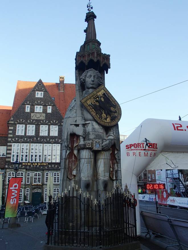 Bremer Roland Bremer Marktplatz Am Markt 8.26 Uhr Start und Ziel waren bereit und innerlich war ich es auch. Aber noch waren es 74 Minuten bis zum Start. |