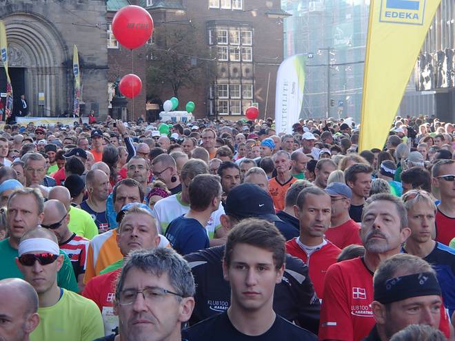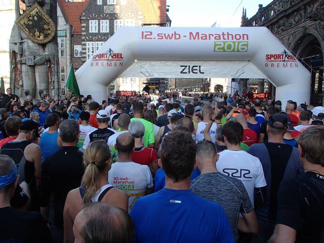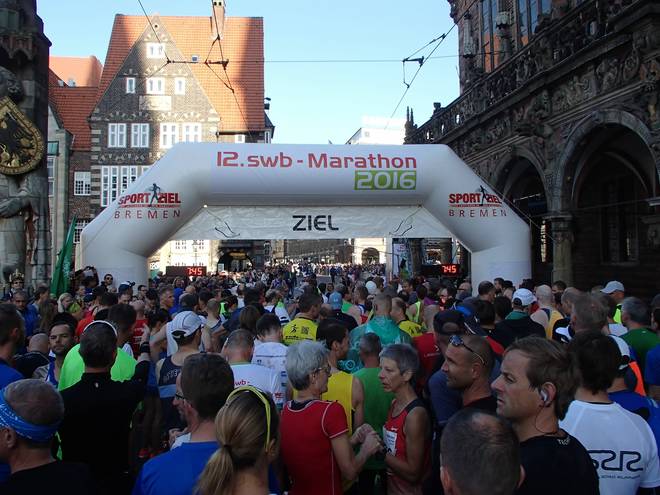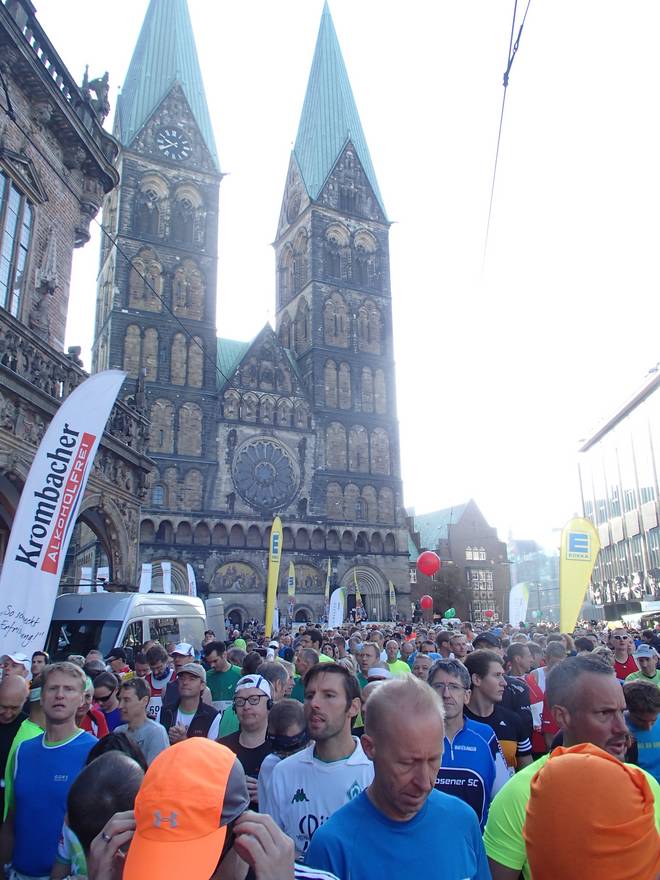 Am Markt Am Dom St. Petri Dom Bremen 9.38 Uhr 3:29:59 Stunden war mein Ziel. Oder zumindest mit 3:35:09 Stunden meine Jahresbestzeit vom Hamburg-Marathon unterbieten. Die Jahresbestzeit sollte nach Bremen. Genauso wie 2014, als ich meine ewige Marathon-Bestzeit (3:13:11 Stunden) nach Bremen holte. Auch die war vorher in Hamburg gelaufen worden (3:19:27 Stunden, Hamburg-Marathon 2012). Hier ging es nicht einfach nur um einen Marathon. Das hier war eine Frage der Ehre. Und die wollte ich als Bremer den Hamburger-Olympia-Deppen zu gerne abnehmen. Allerdings hatte ich von den 27 Marathon 2016 bisher nur 14 unter 4:00 Stunden, fünf unter 3:50 Stunden und nur einen unter 3:40 Stunden gefinisht. Das würde interessant werden. |