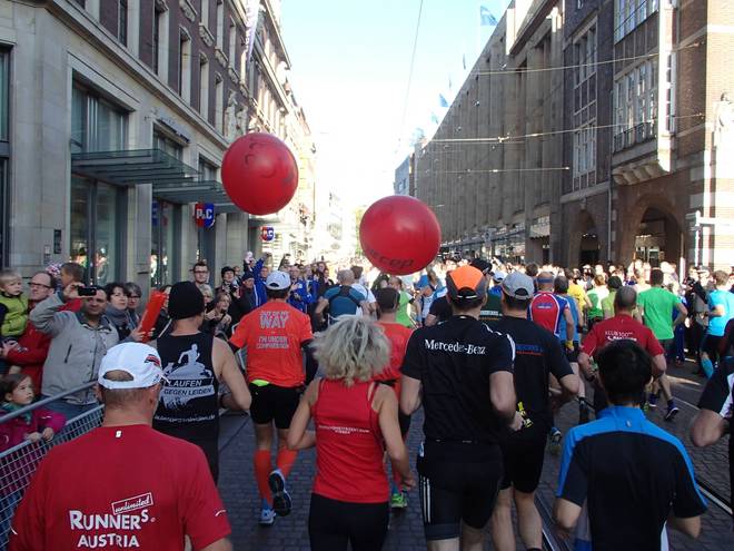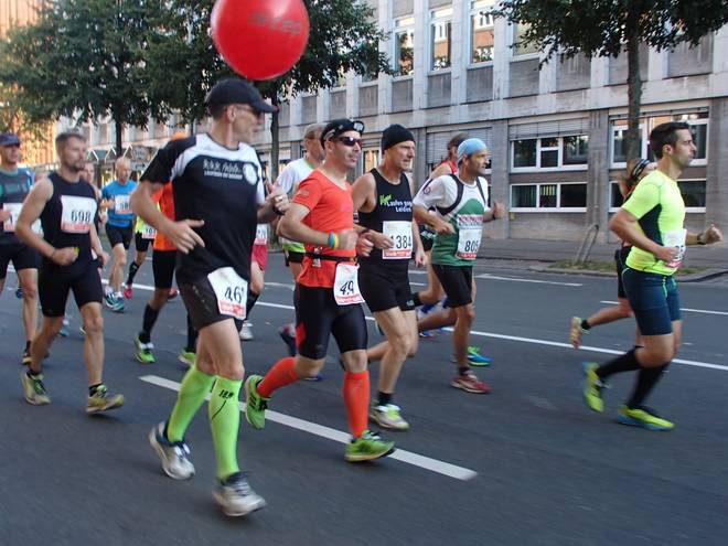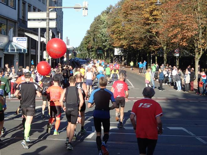 Martinistraße 9.45 Uhr / Km 1,0 Das klappte zu Beginn schon recht gut. Hier wurde ich von einigen Überholern kurz sogar vor die Ballons gedrängt. |