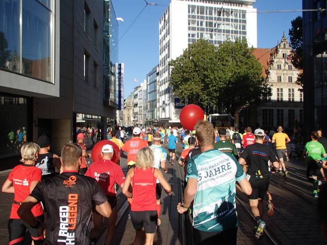 Obernstraße 9.42 Uhr / Km 0,3 Jetzt hieß es erst einmal, sich im Startgewühl nicht zu sehr von den Ballons zu entfernen. |