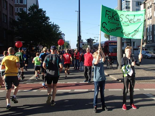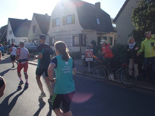 Holzdamm 10.29 Uhr / Km 10,0 49:42 Minuten bei Kilometer Zehn. 24:52 Minuten für die zweiten fünf Kilometer. Zwei Sekunden langsamer, aber das war egal. |