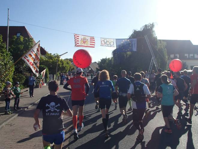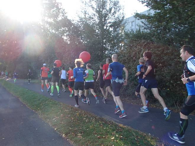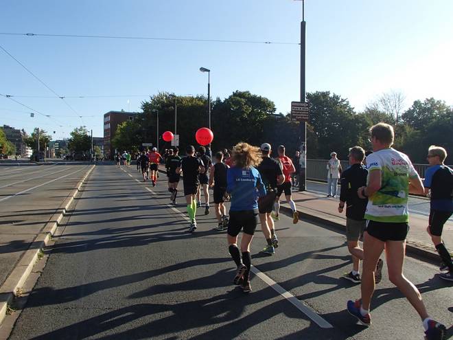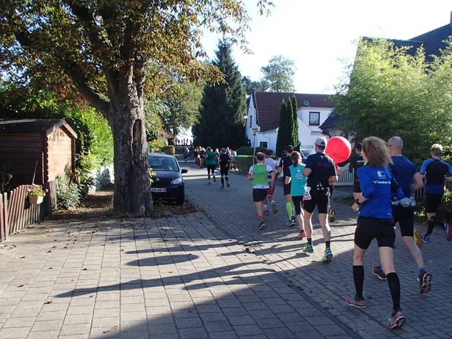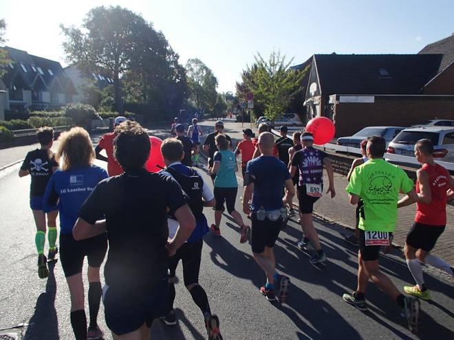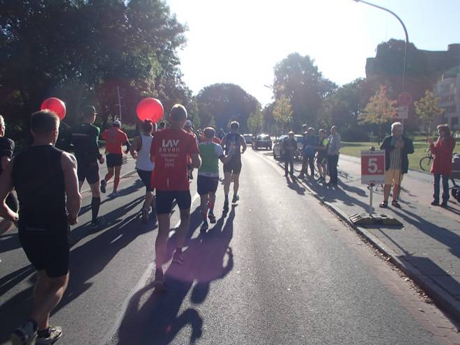 Habenhauser Dorfstraße 10.35 Uhr / Km 11,0 Auch nach elf Kilometern hing ich immer noch an den Ballons. Und immer noch konnte ich das Tempo ohne Probleme halten. |