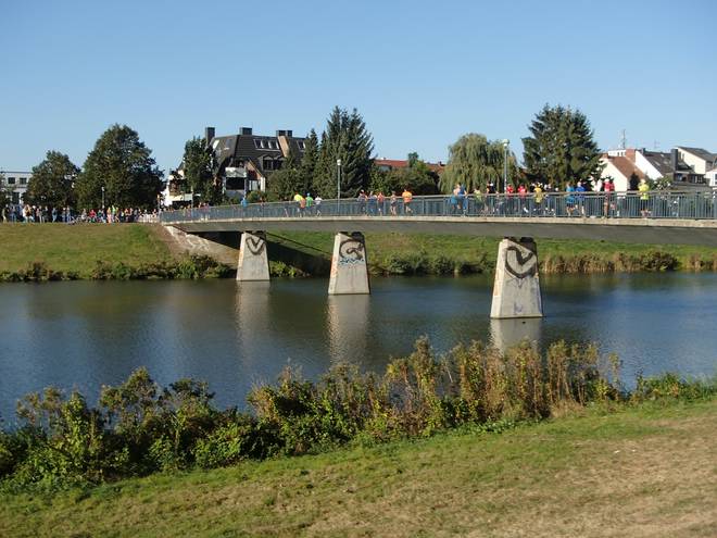 Am Werdersee 10.17 Uhr / Km 7,4 Diese Brücke führte uns ein weiteres Mal über die Kleine Weser. |
