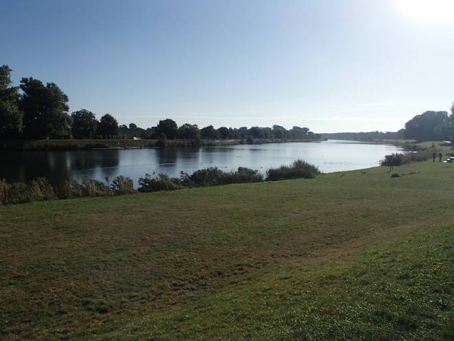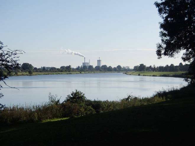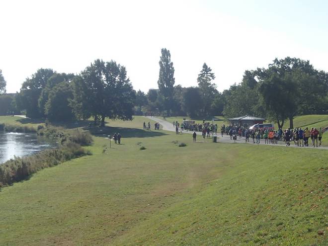 Habenhauser Deich 10.40 Uhr / Km 12,0 Auch das Ende des Werdersees hatten wir erreicht. Kurz auf dem Deich ging es am Ostende des Sees weiter. |