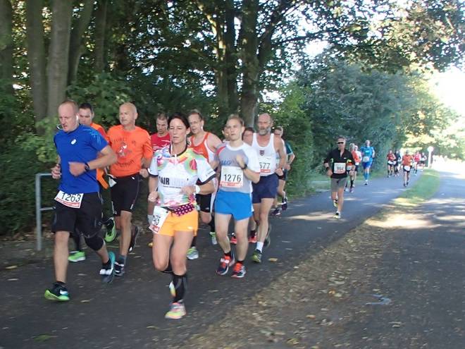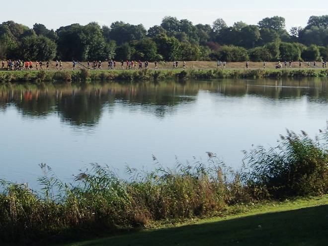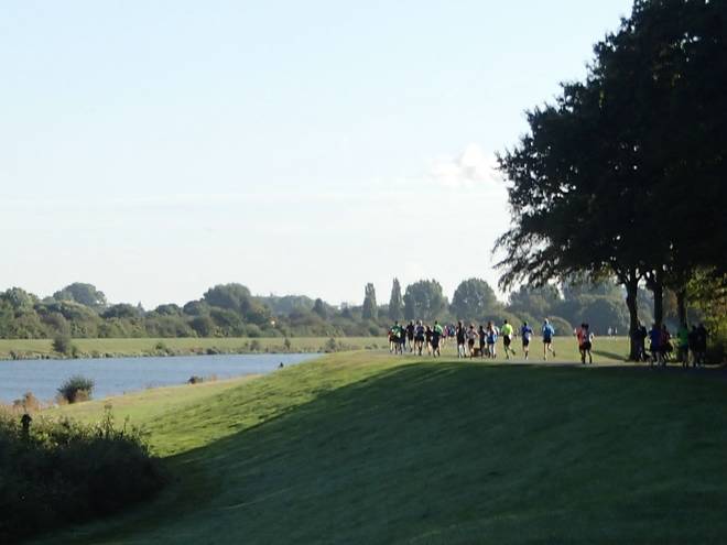 Am Werdersee 10.15 Uhr / Km 7,0 Auf der Gegenseite liefen die ganze Schnellen. Die hatten gut einen Kilometer Vorsprung. |