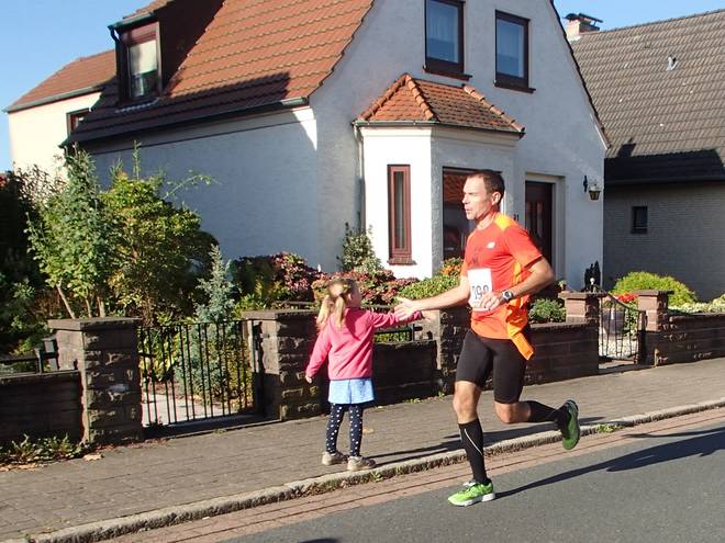 Holzdamm 10.31 Uhr / Km 10,3 Hier standen nun regelmäßig Zuschauer an der Strecke. Eigentlich den ganzen Weg durch Habenhausen hatten wir Leute am Rand stehen. Nicht unbedingt große Massen, aber gut verteilt. |
