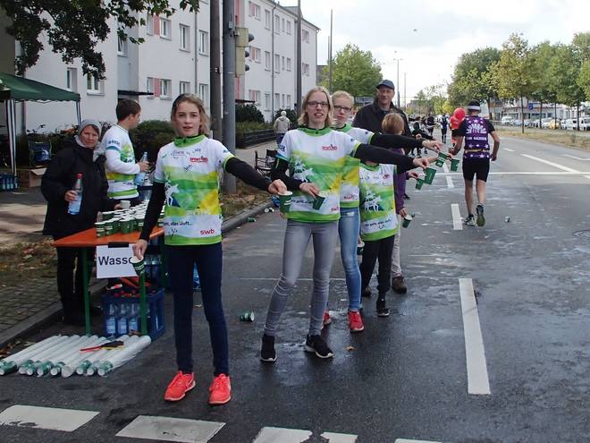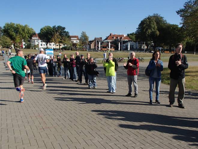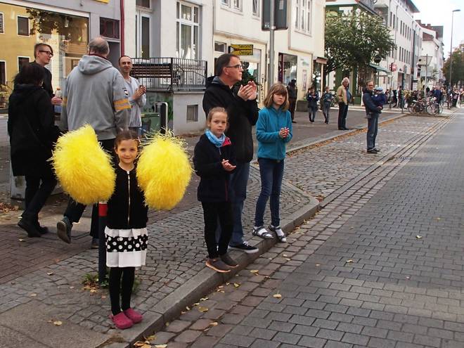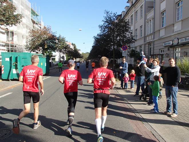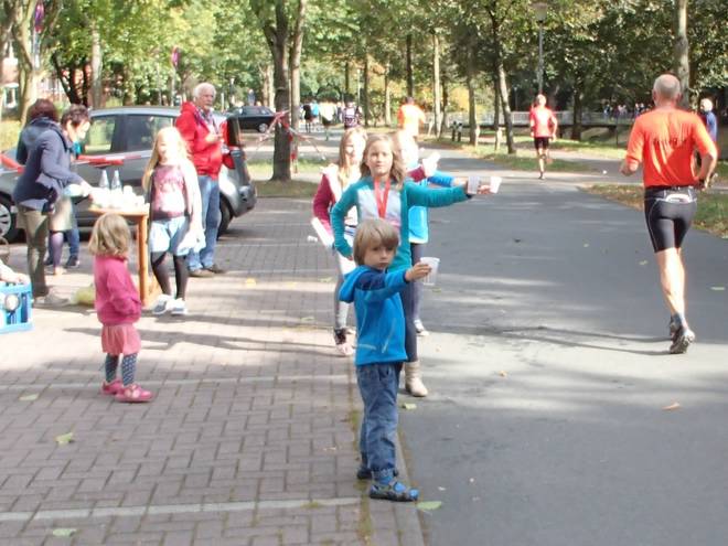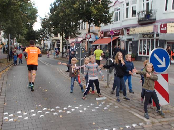 Hemmstraße 12.11 Uhr / Km 30.8 Auch wenn man mal über die halbe Straße rennen muß, Kinderhände abklatschen geht immer. |