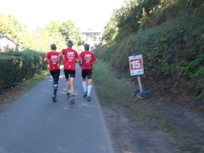 Wehrstraße 10.45 Uhr / Km 13,0 Die Stimmung in der Gruppe war gut. Kein Wunder. Es waren ja auch nur diejenigen dabei, die das Tempo halten konnten. |
