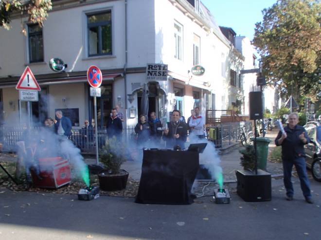 Belfortstraße 11.05 Uhr / Km 17,3 Nun wäre es zumindest an der Zeit gewesen, die Pinkelpause noch schnell einzulegen, bevor mich die Ballon-Läufer wieder eingeholt hätten, aber hier im Wohnviertel konnte das ja nichts werden. |