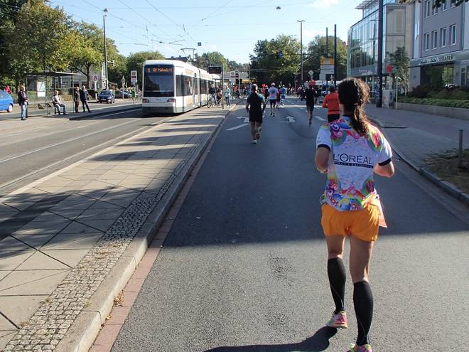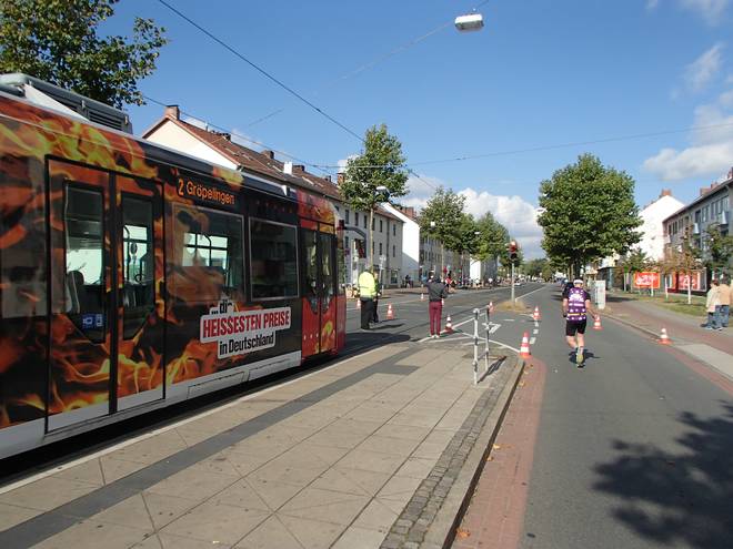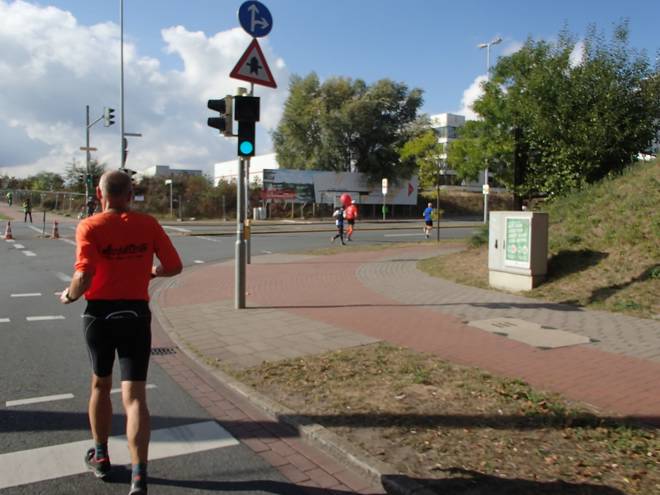 Meta-Sattler-Straße 12.13 Uhr / Km 31.2 Dann holte uns der erste Halbmarathon-Läufer ein. |