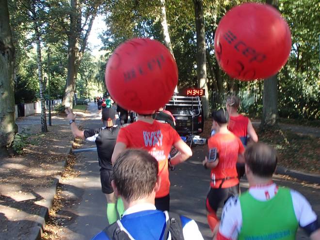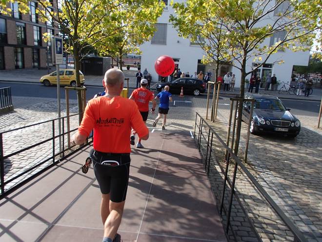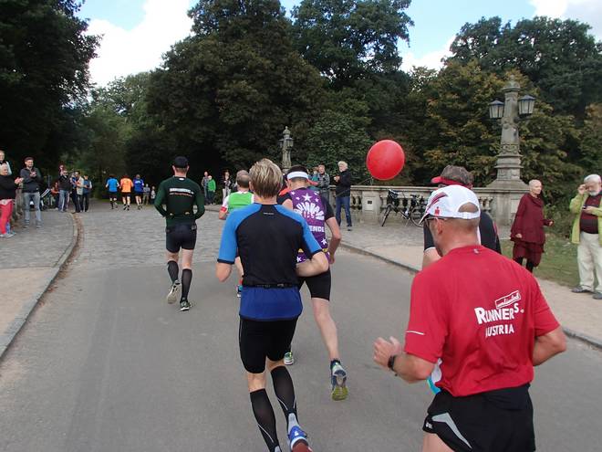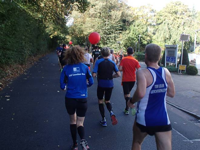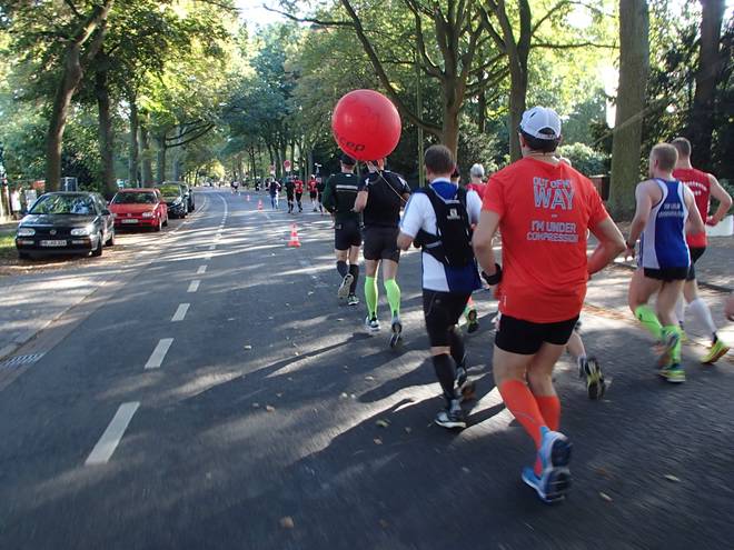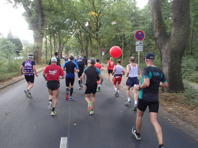 Marcusallee Erstaunlich schnell. Hatte ich nicht die 13 Sekunden, die ich bei Kilometer 15 Vorsprung auf die Ballons hatte, nun wieder verloren? Statt dessen hatte die ganze Gruppe offenbar noch zusätzlich 52 Sekunden dazu gewonnen.