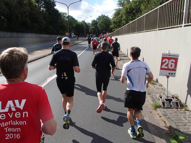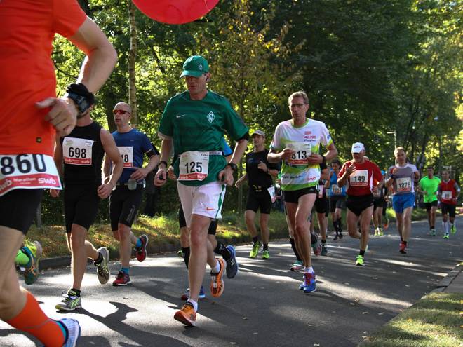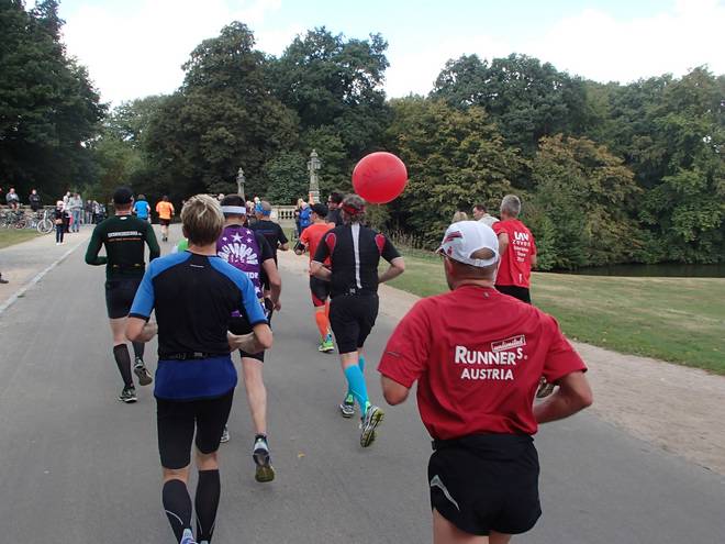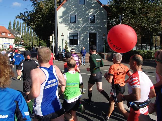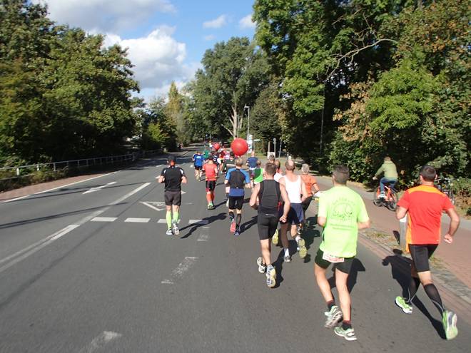 Findorffallee 11.56 Uhr / Km 27,8 Die Gruppe hinter dem Ballon wurde immer übersichtlicher. |